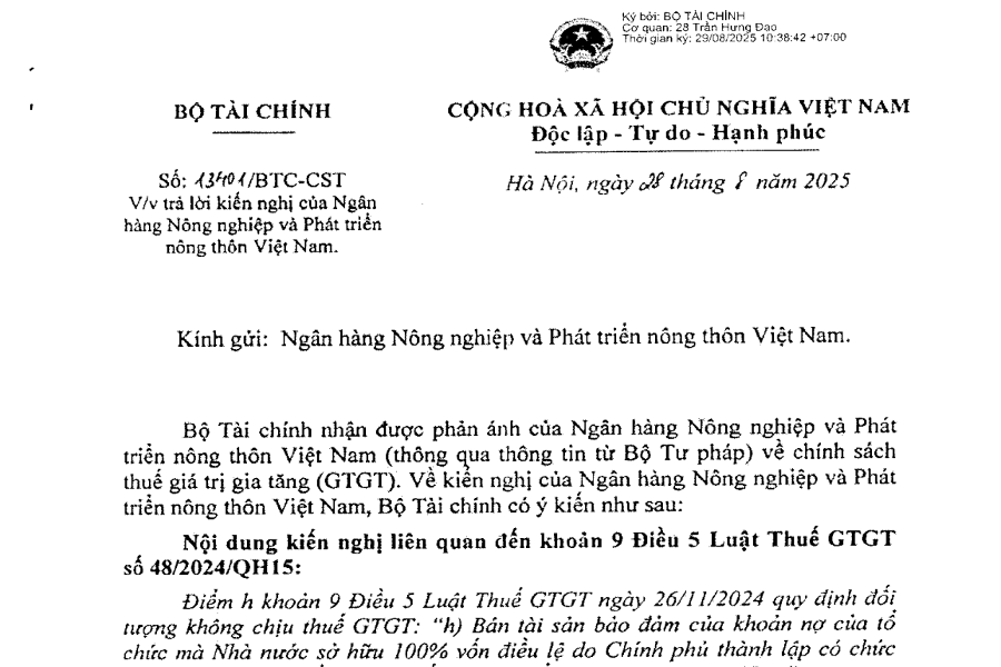 BỘ TÀI CHÍNH Số: 13401/BTC-CST V/v trả lời kiến nghị của Ngân hàng Nông nghiệp và Phát triển nông thôn Việt Nam. CỘNG HOÀ XÃ HỘI CHỦ NGHĨA VIỆT NAM...