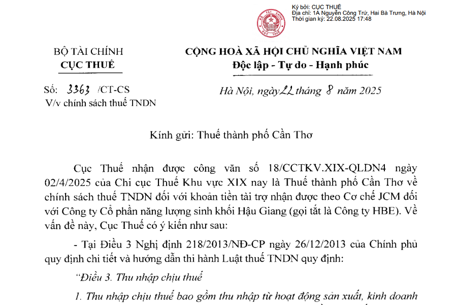 BỘ TÀI CHÍNH CỤC THUẾ ——- CỘNG HÒA XÃ HỘI CHỦ NGHĨA VIỆT NAM Độc lập – Tự do – Hạnh phúc ————— Số: 3363/CT-CS V/v chính sách thuế TNDN...