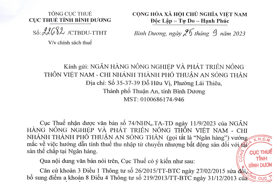 TỔNG CỤC THUẾ CỤC THUẾ TỈNH BÌNH DƯƠNG Số: 22682/CTBDU-TTHT V/v chính sách thuế CỘNG HÒA XÃ HỘI CHỦ NGHĨA VIỆT NAM Độc lập – Tự do – Hạnh phúc...
