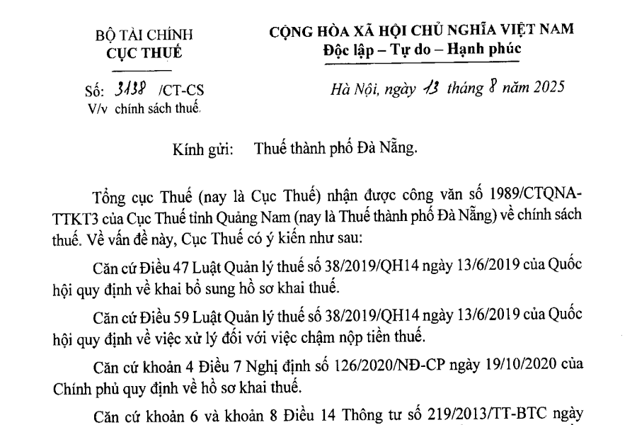 Công văn 3138 Hướng dẫn kê khai thuế sau khi thuế ban hành kết luận quyết định xử lý về thuế