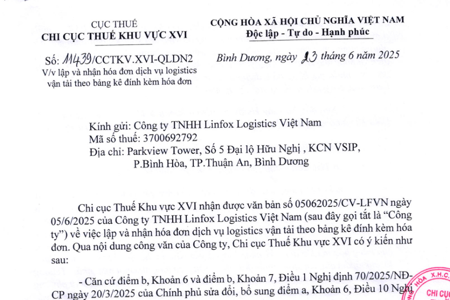 Công văn 11439 Về lập hóa đơn dịch vụ logistics kèm theo bảng kê