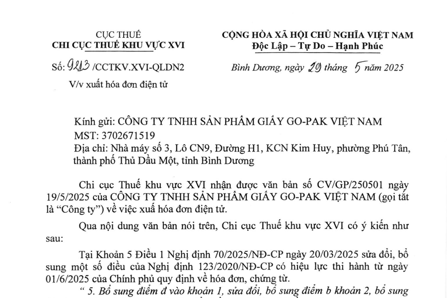 CỤC THUẾ CHI CỤC THUẾ KHU VỰC XVI Số: 9213/CCTKV.XVI-QLDN2 V/v xuất hóa đơn điện tử CỘNG HÒA XÃ HỘI CHỦ NGHĨA VIỆT NAM Độc Lập – Tự Do –...