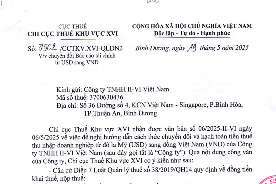 CỤC THUẾ CHI CỤC THUẾ KHU VỰC XVI Số: 7902/CCTKV.XVI-QLDN2 V/v chuyển đổi Báo cáo tài chính từ USD sang VND CỘNG HÒA XÃ HỘI CHỦ NGHĨA VIỆT NAM Độc...