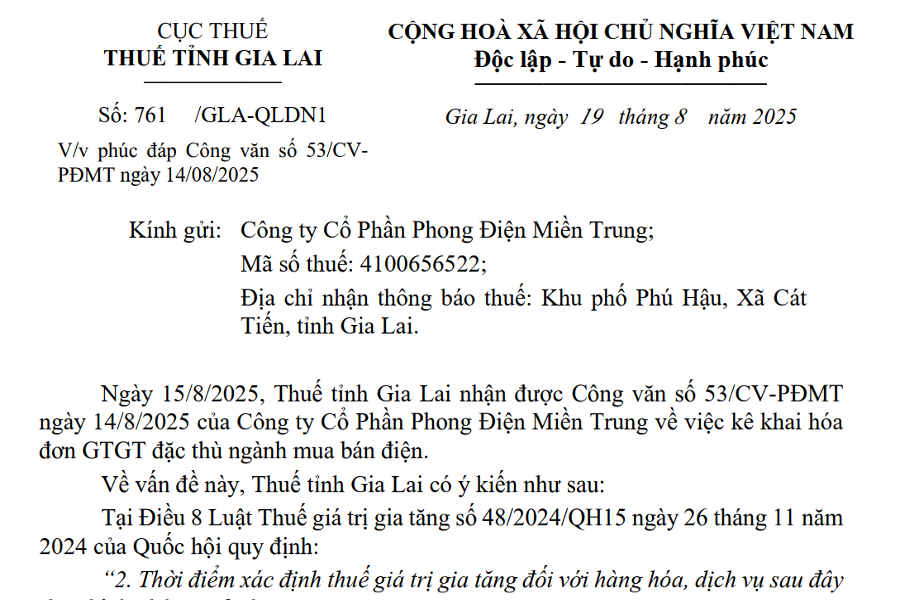 CỤC THUẾ THUẾ TỈNH GIA LAI CỘNG HOÀ XÃ HỘI CHỦ NGHĨA VIỆT NAM Độc lập – Tự do – Hạnh phúc Số: 761 /GLA-QLDN1 V/v phúc đáp Công văn...