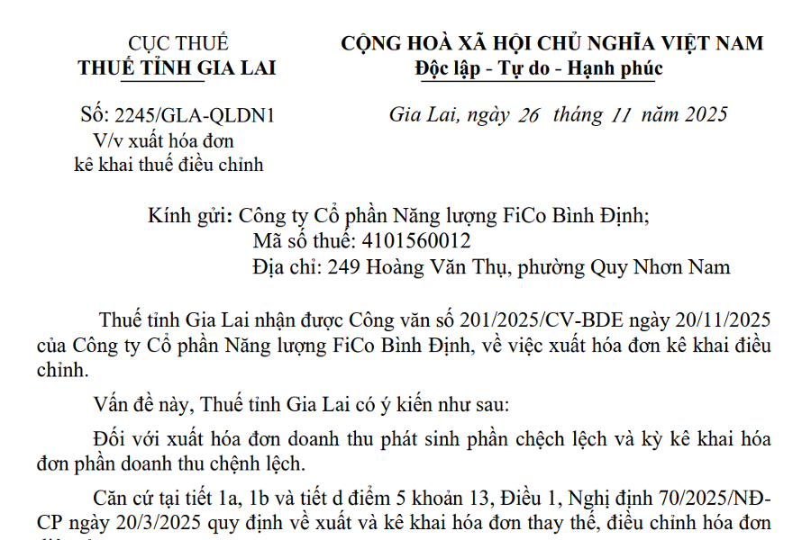 CỤC THUẾ THUẾ TỈNH GIA LAI CỘNG HOÀ XÃ HỘI CHỦ NGHĨA VIỆT NAM Độc lập – Tự do – Hạnh phúc Số: 2245 /GLA-QLDN1 V/v xuất hóa đơn kê...